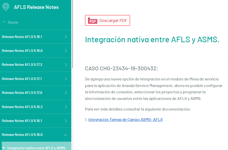 La documentación de las notas release de producto nos referencia las últimas actualizaciones, ajustes, solución a problemas o nuevas funcionalidades de la aplicación.