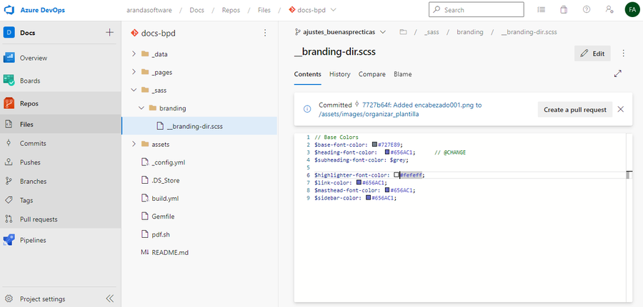 5. Después de ajustar el branding, genere el Pull Request para implementar los ajustes en el proyecto.
