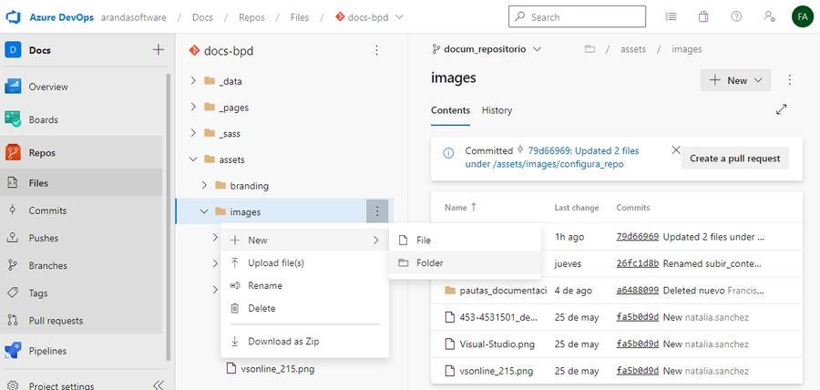 8. Después de crear o renombrar la carpeta de imágenes, genere el Pull Request.