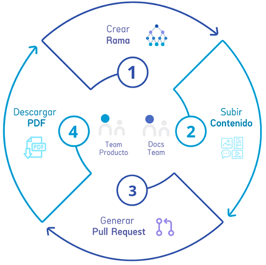 Los usuarios registrados pueden crear solicitudes de incorporación de cambios (Pull Request) a partir de ramas generadas. Los equipos de trabajo que realizan sus aportes al proyecto, podrán revisar los Pull Request y agregar comentarios sobre los cambios, revisar el historial de cambios y aprobar o rechazar los cambios propuestos.