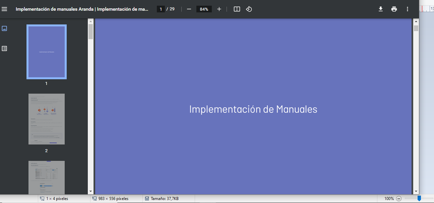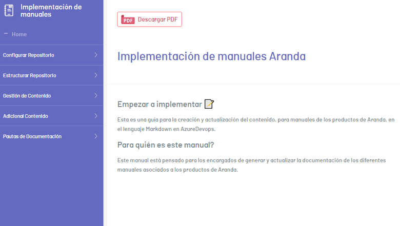 Terminado el proyecto de documentación el documentador de producto o un usuario final podrá consultar el manual en línea desde el portal de documentación o imprimir en PDF el contenido del mismo.