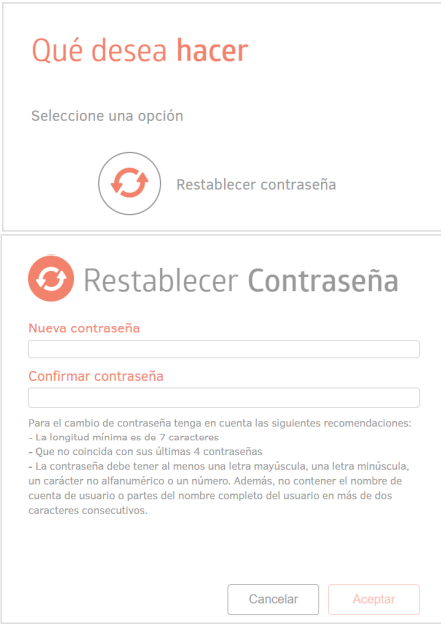 Una vez se confirme el ingreso de las preguntas de seguridad, se podrá restablecer la contraseña.