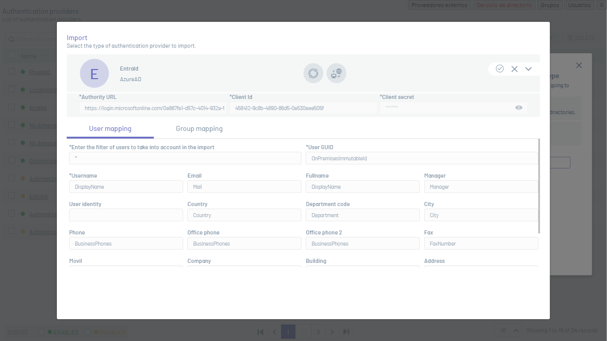 | Viewing Directory Services | If the user role has the GETAUTHPROVIDER, GETCONFIGURATIONLDAP You will be able to view all the information in the directories, import mapping fields, etc. | ![]() |