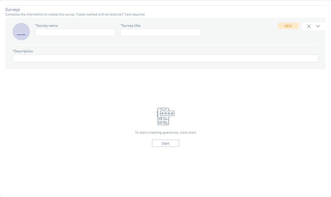 1. Para crear una nueva encuesta, en la vista de información de encuestas, haga clic en el botón Nuevo.